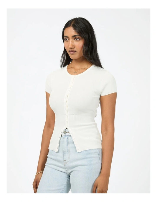 All About Eve Olive Knit Top White