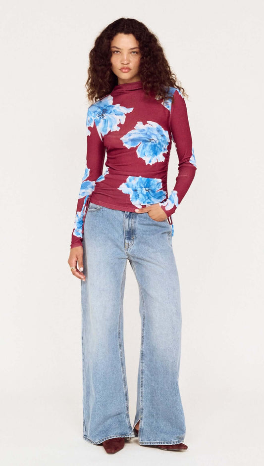 Mink Pink Fiorella Mesh Top | Wine/Blue Floral