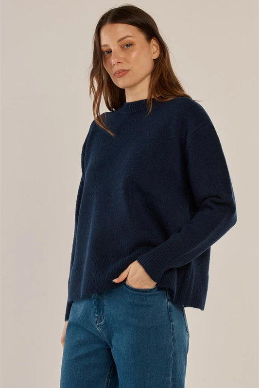 Thrills Between Chaos & Calm Slouch Pull On Cropped Hood | Federal Blue