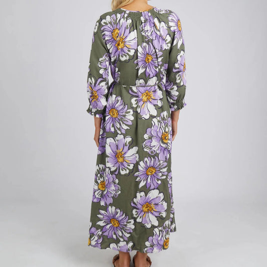 ELM ANTHEIA FLORAL GATHERED DRESS CLOVER
