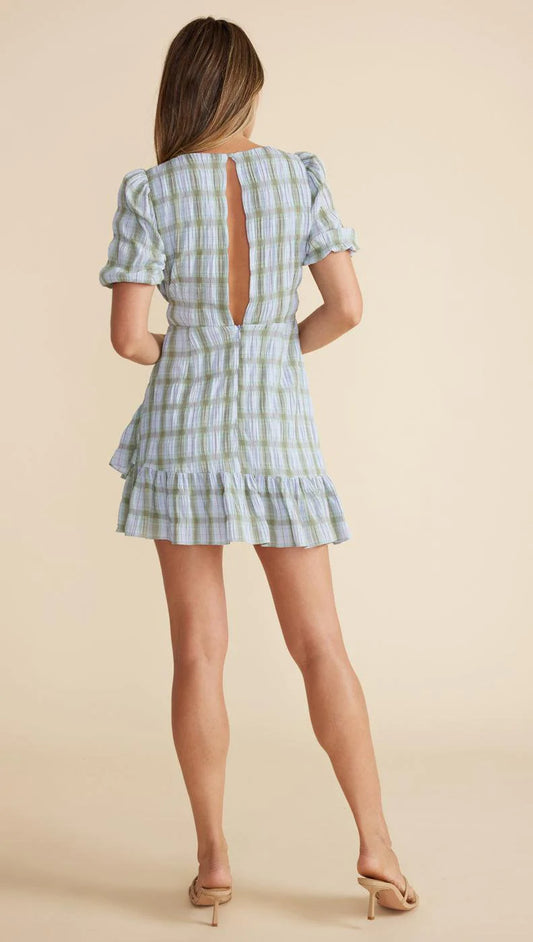 MINK PINK CONNIE PUFF SLEEVE MIDI MINT/NAVY FLORAL