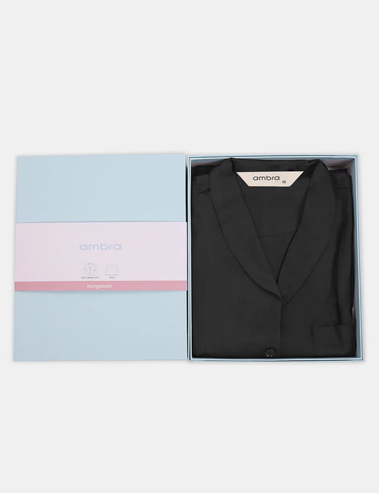 AMBRA SATIN SS SHIRT SHORT BLACK PJ GIFT BOX
