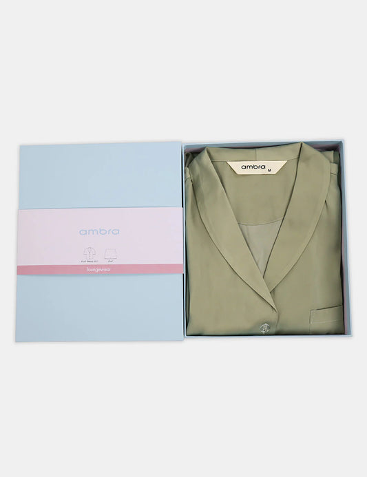 AMBRA SATIN SS SHIRT SHORT PISTACHIO PJ GIFT BOX