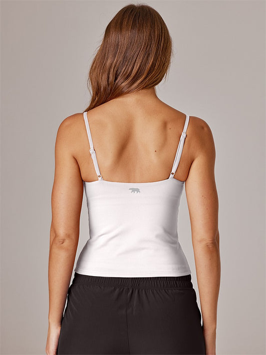 RUNNING BARE SMOOTH MOVES PUSH UP CAMI TANK W/SHELF BRA (MID SUPPORT) WHITE