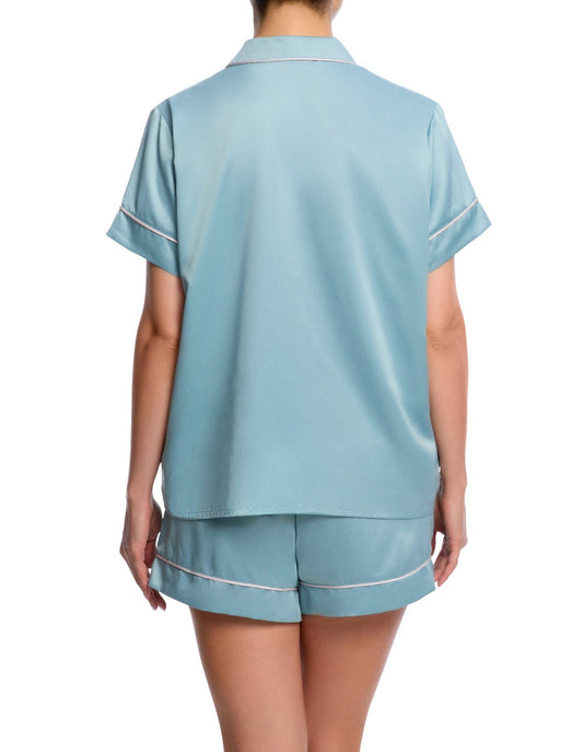 SAINTED SISTERS PRINTED SATIN S/S PJS DUCK EGG BLUE