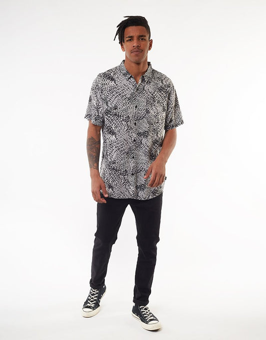 SILENT THEORY STANDARD LINEN BLEND STRIPE SS SHIRT BROWN
