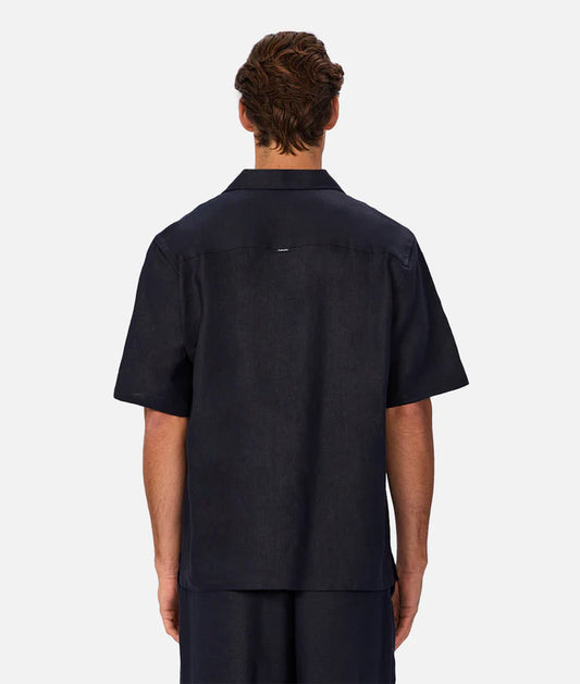 Industrie The Lusso Linen Short Sleeve Shirt | Ink