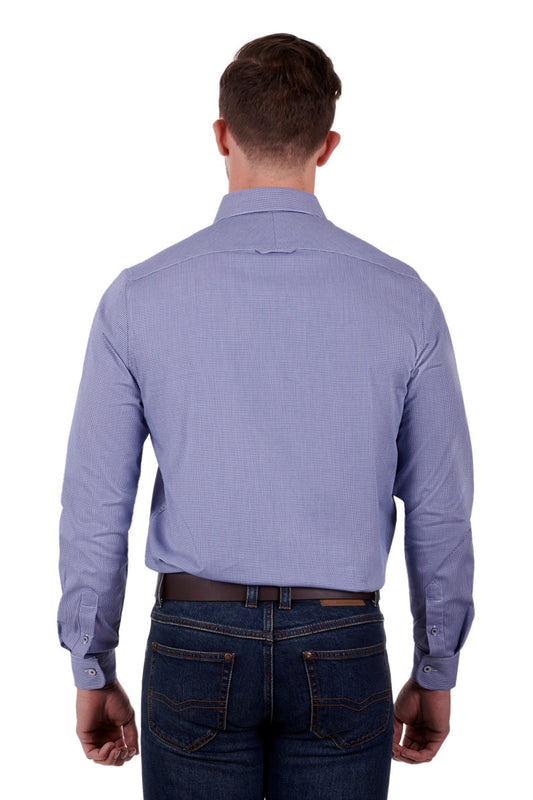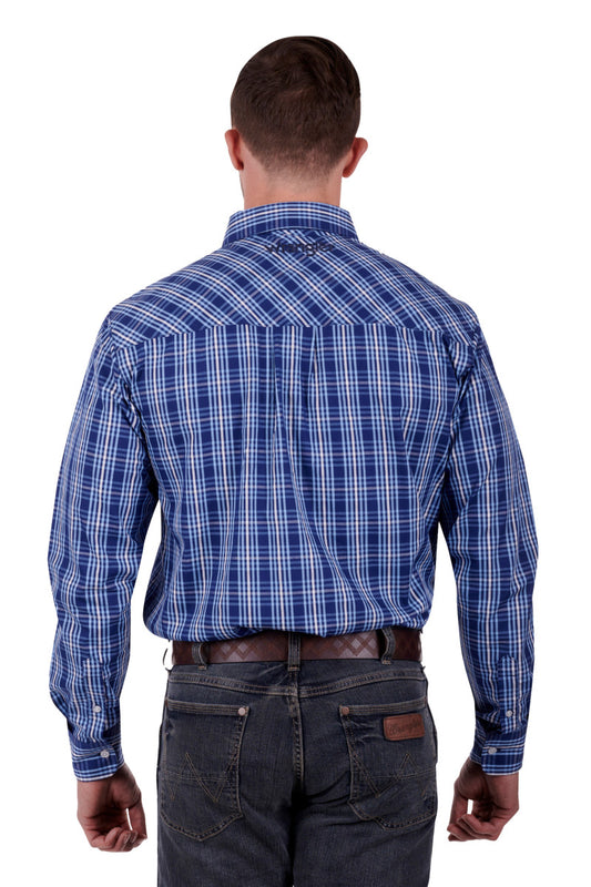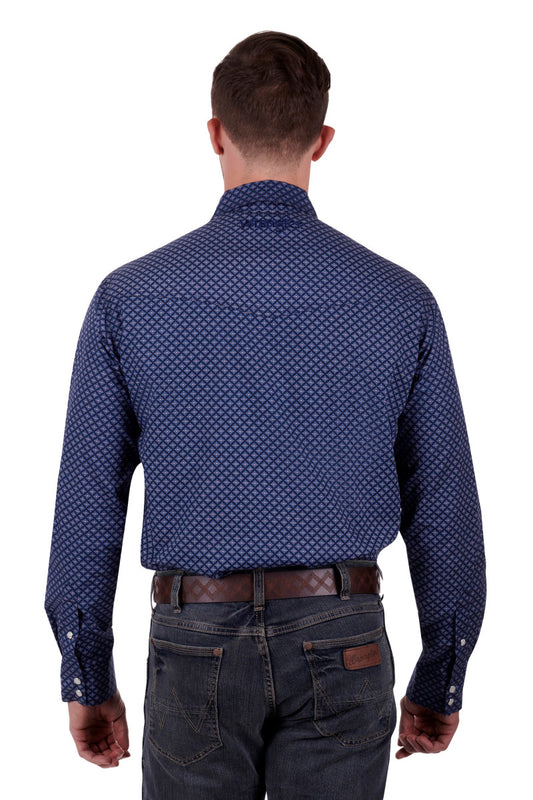 WRANGLER MENS GRANGE LS SHIRT NAVY/WHITE