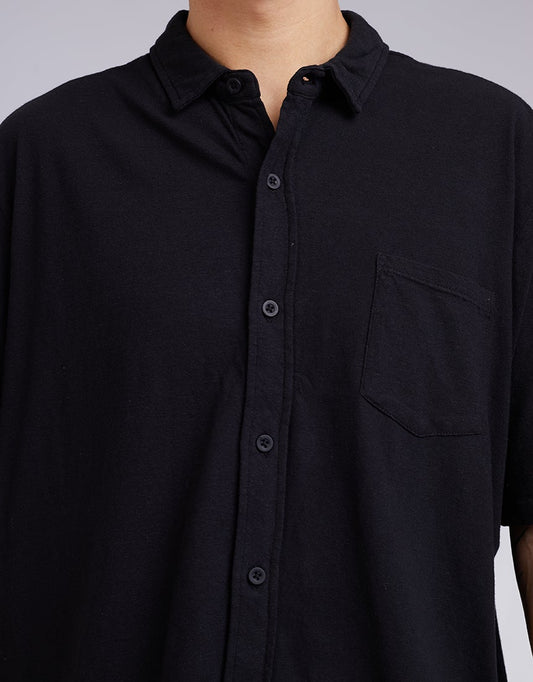 SILENT THEORY LINEN BLEND JERSEY SS SHIRT BLACK