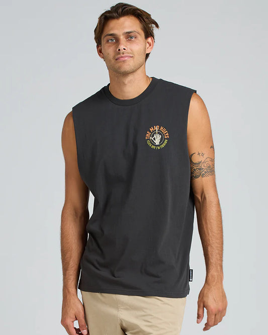 THE MAD HUEYS FK OFF IM FISHING MUSCLE VINTAGE BLACK