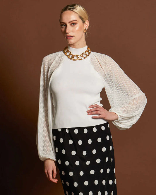 FATE+BECKER SNOWFLAKE SHEER SLEEVE KNIT TOP WHITE