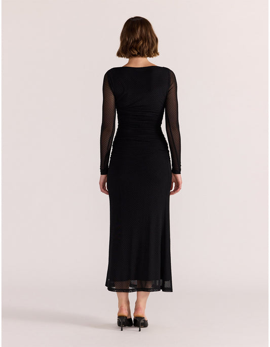 STAPLE THE LABEL KAIA SPOT MESH MAXI DRESS BLACK
