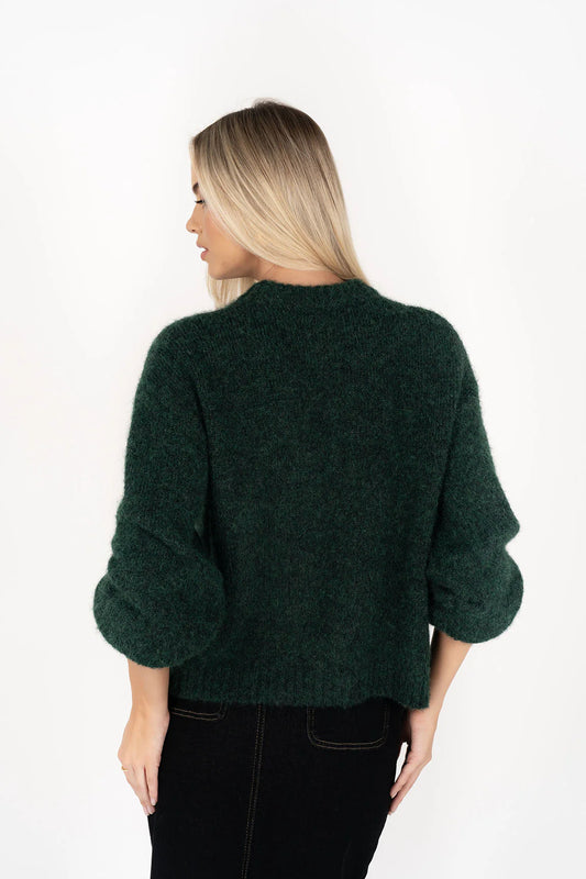 STYLE STATE TEXTURED RIB KNIT TOP WITH MARBLE BUTTON DETAIL WHITE