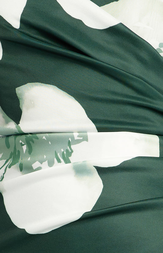 STYLE STATE LARGE SCALE FLORAL PLEATED SIDE DETAIL MIDI DRESS EMERALD