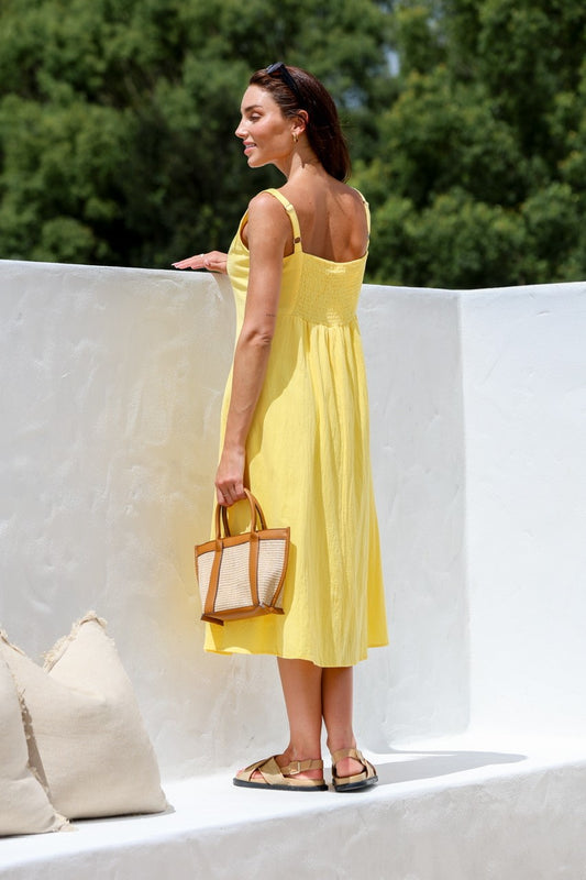 MISS MARLOW TEXTURED COTTON MAYFAIR DRESS YELLOW