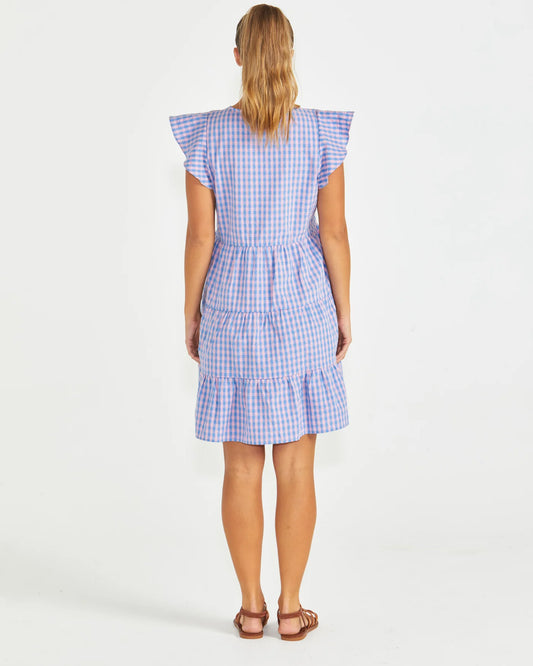SASS PHILLIPA DRESS BLUE/PINK GINGHAM