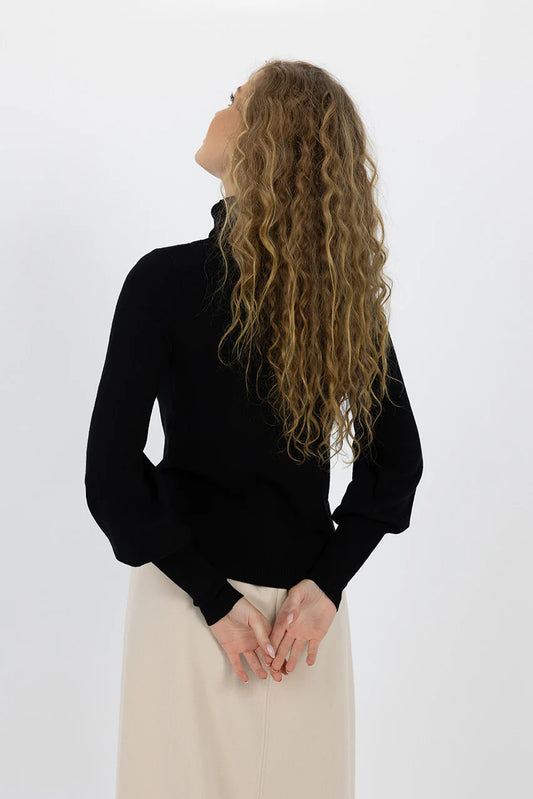 SASS NISHA MOCK NECK TOP BLACK