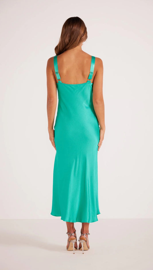 MINKPINK GAIA BIAS SLIP MIDI DRESS AQUAMARINE