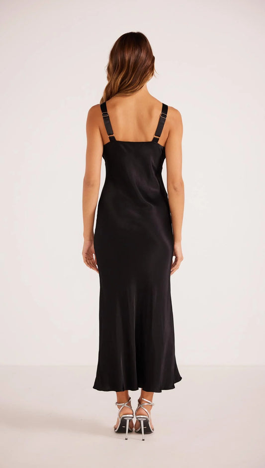 MINKPINK GAIA BIAS SLIP MIDI DRESS BLACK