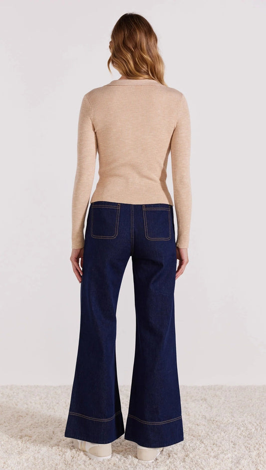 STAPLE THE LABEL ALTA COLLARED KNIT TOP BEIGE MARLE