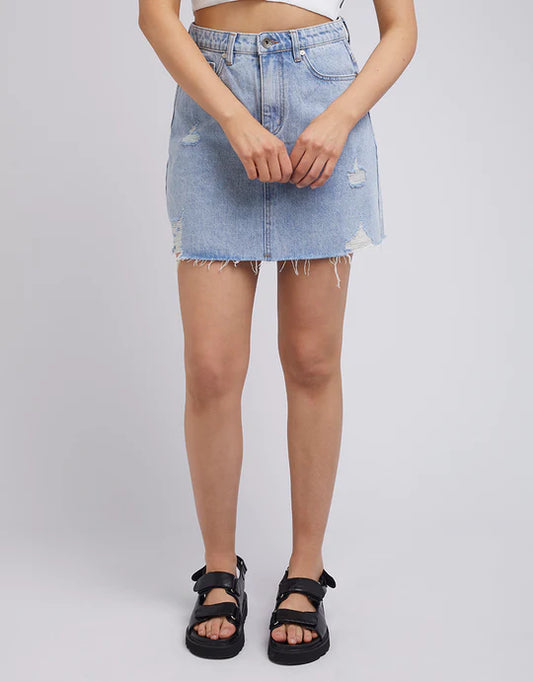 SILENT THEORY LEADING DENIM SKIRT LIGHT BLUE