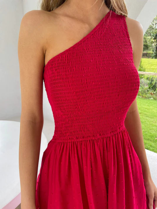 MYLK CIERRA ONE SHOULDER MAXI DRESS RED