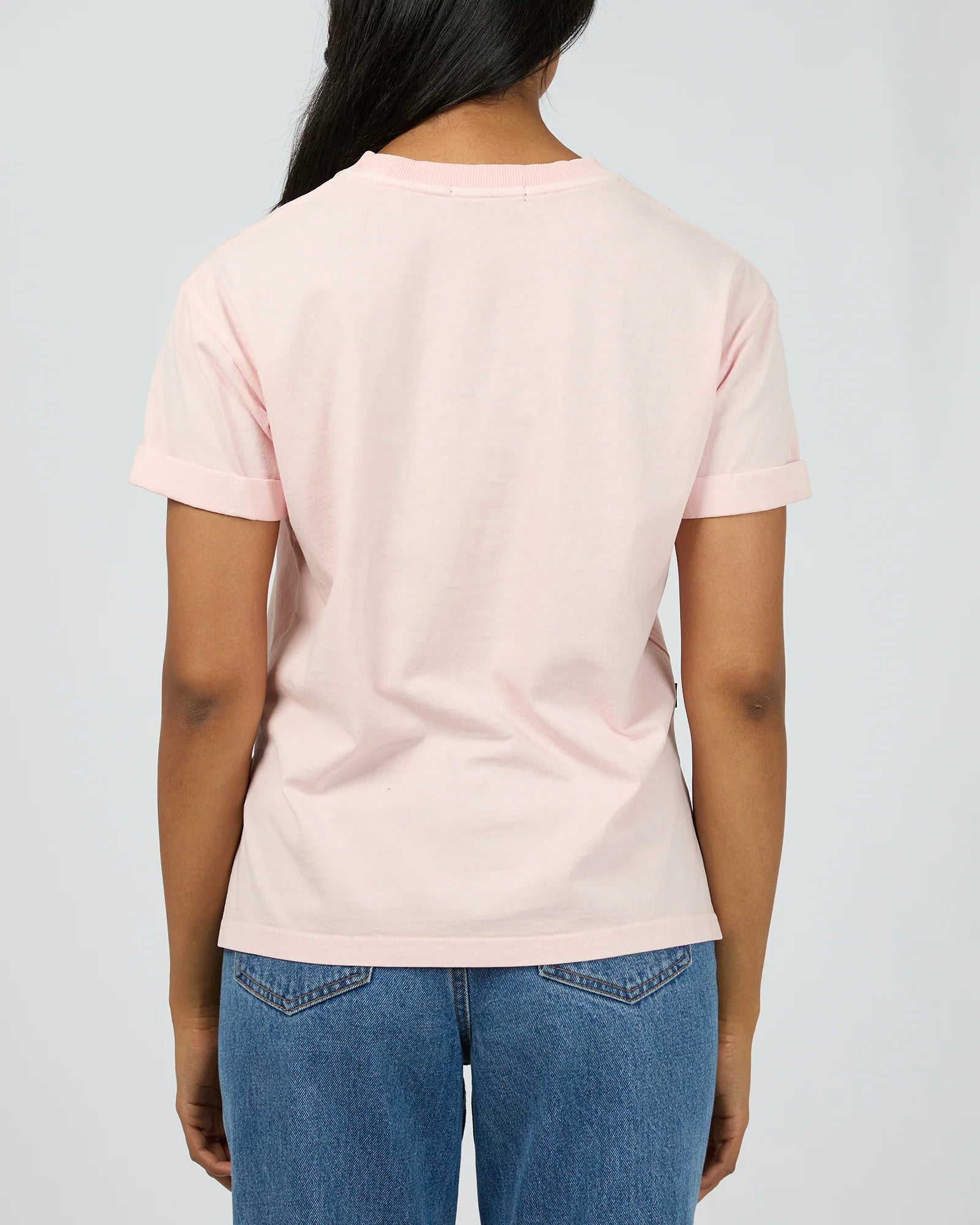 The All About Eve Washed Tee in light pink features a soft garment wash and a branded chest embroidery for a subtle touch of style. With rolled sleeve cuffs and a regular fit, it’s made from 100% cotton for comfortable wear. Perfectly paired with denim jeans and sneakers, it creates a chic and easy weekend outfit. Model is wearing a size 8.
