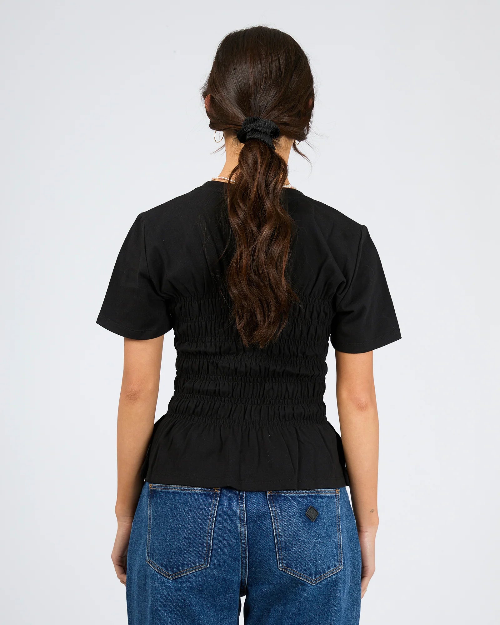 Elevate your look with the All About Eve Lipa Ruched Top in black. Made from soft, breathable 100% cotton, this fitted tee features stylish ruching that flatters your silhouette. Perfect for both casual days and dressier events, it pairs effortlessly with denim or tailored pants for versatile wear. Comfortable and chic, it’s a wardrobe essential that combines ease with elegance.