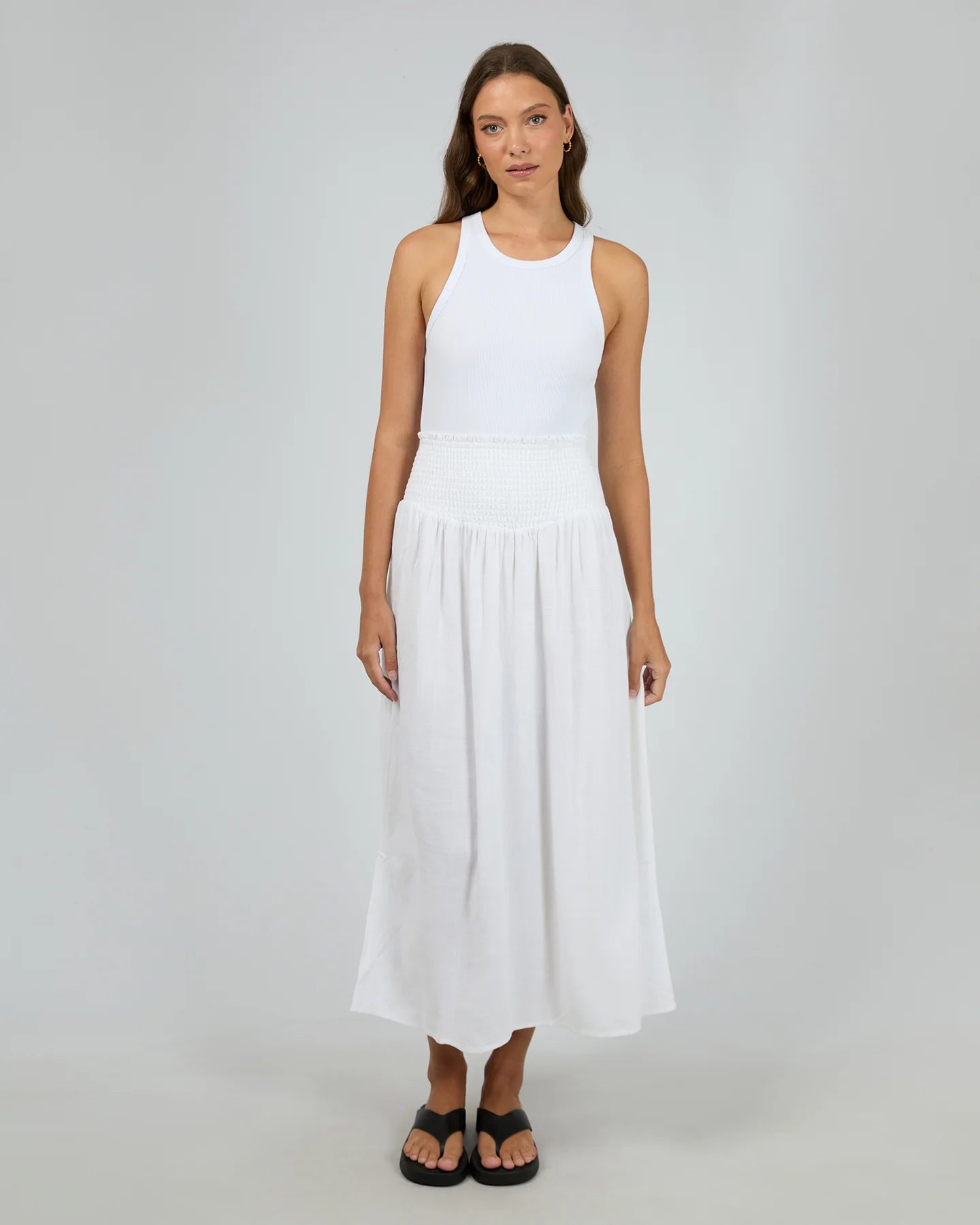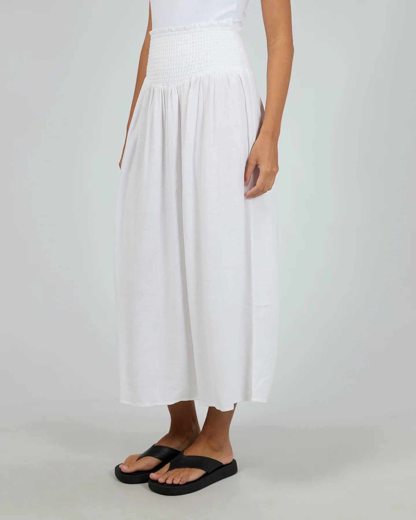 ALL ABOUT EVE LUXE LINEN SHIRRED MAXI SKIRT VINTAGE WHITE