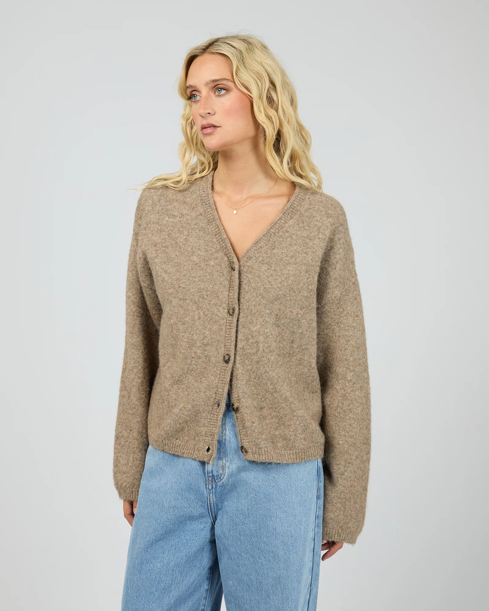 The Nova Cardigan in Mocha is a versatile layering piece that works year-round. Made from a soft, textured blend of recycled polyester, nylon, and acrylic, it delivers warmth without bulk. The relaxed fit and functional front buttons let you wear it buttoned as a standalone top or open over basics for effortless layering. In this timeless neutral shade, it pairs beautifully with denim, trousers, or dresses—a go-to for everyday style that transitions seamlessly across seasons.