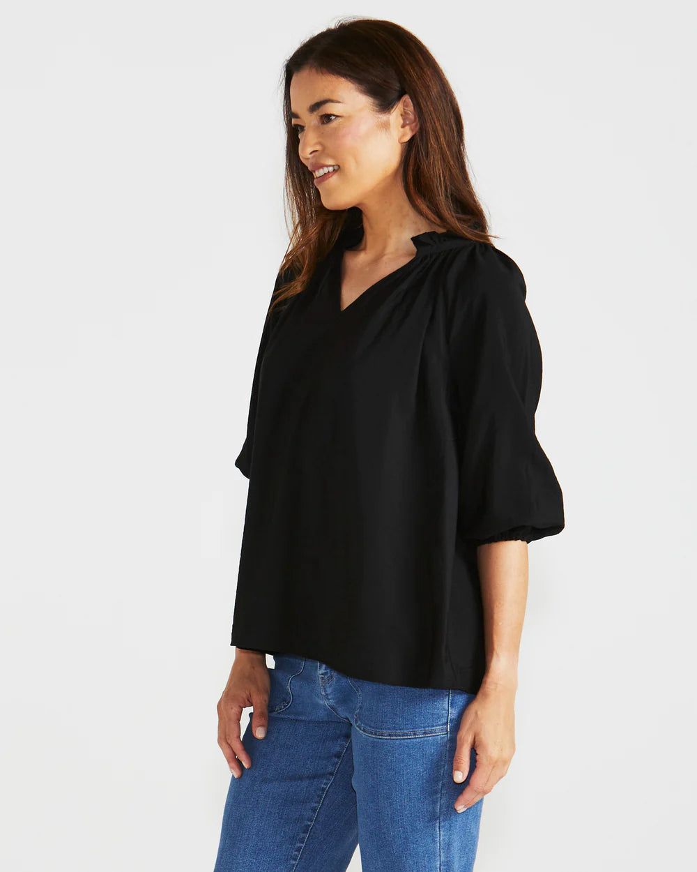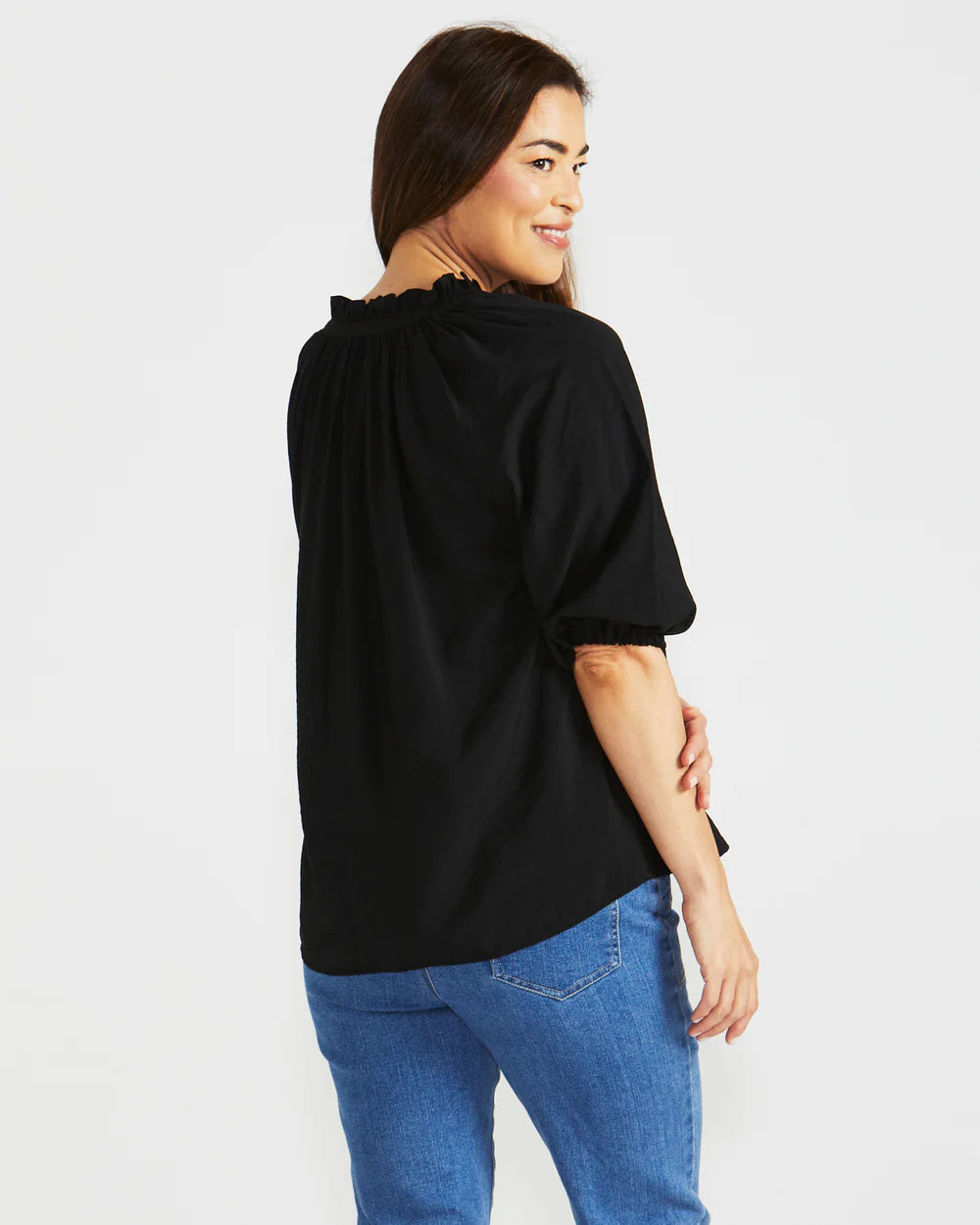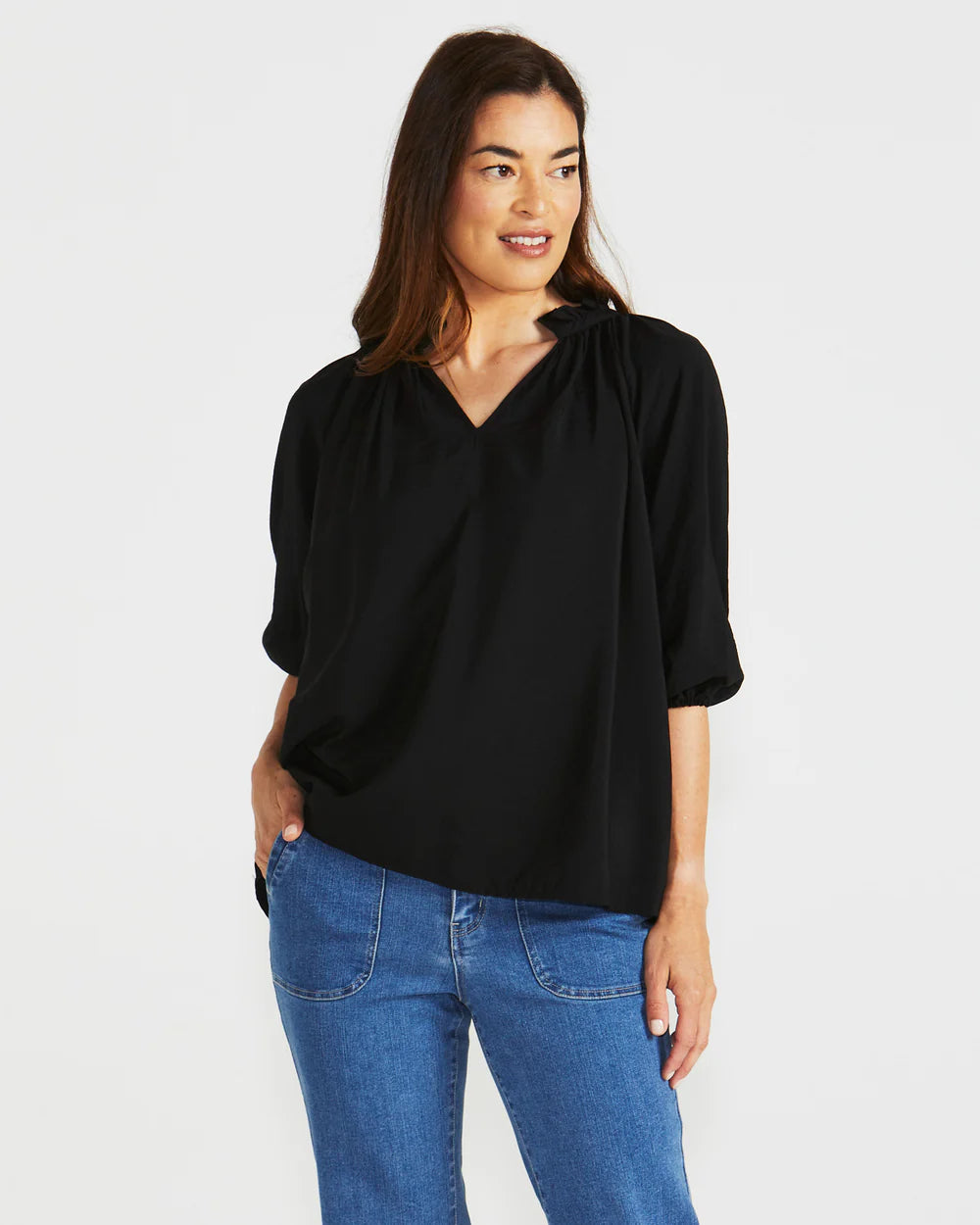 Introducing the Cecilia Blouse, the perfect blend of relaxed elegance and effortless style. This versatile blouse features a relaxed drape fit, shirred mandarin collar, statement buttons, and elasticated cuffs for a polished yet comfortable look. Whether for work or play, the Cecilia Blouse offers sophisticated versatility.
