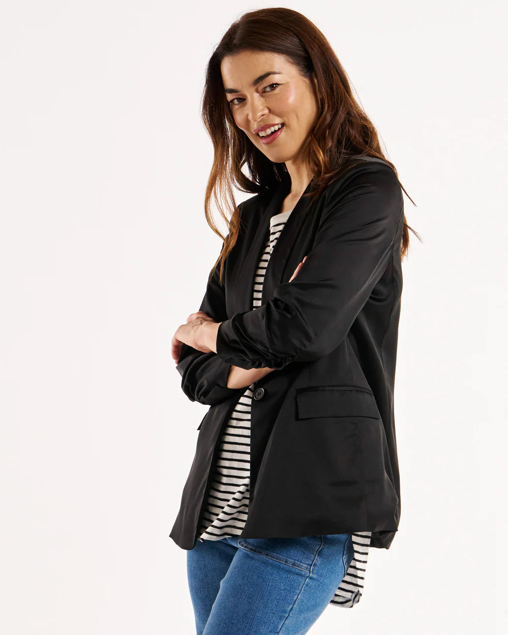 BETTY BASICS JAYDE SATIN BLAZER BLACK