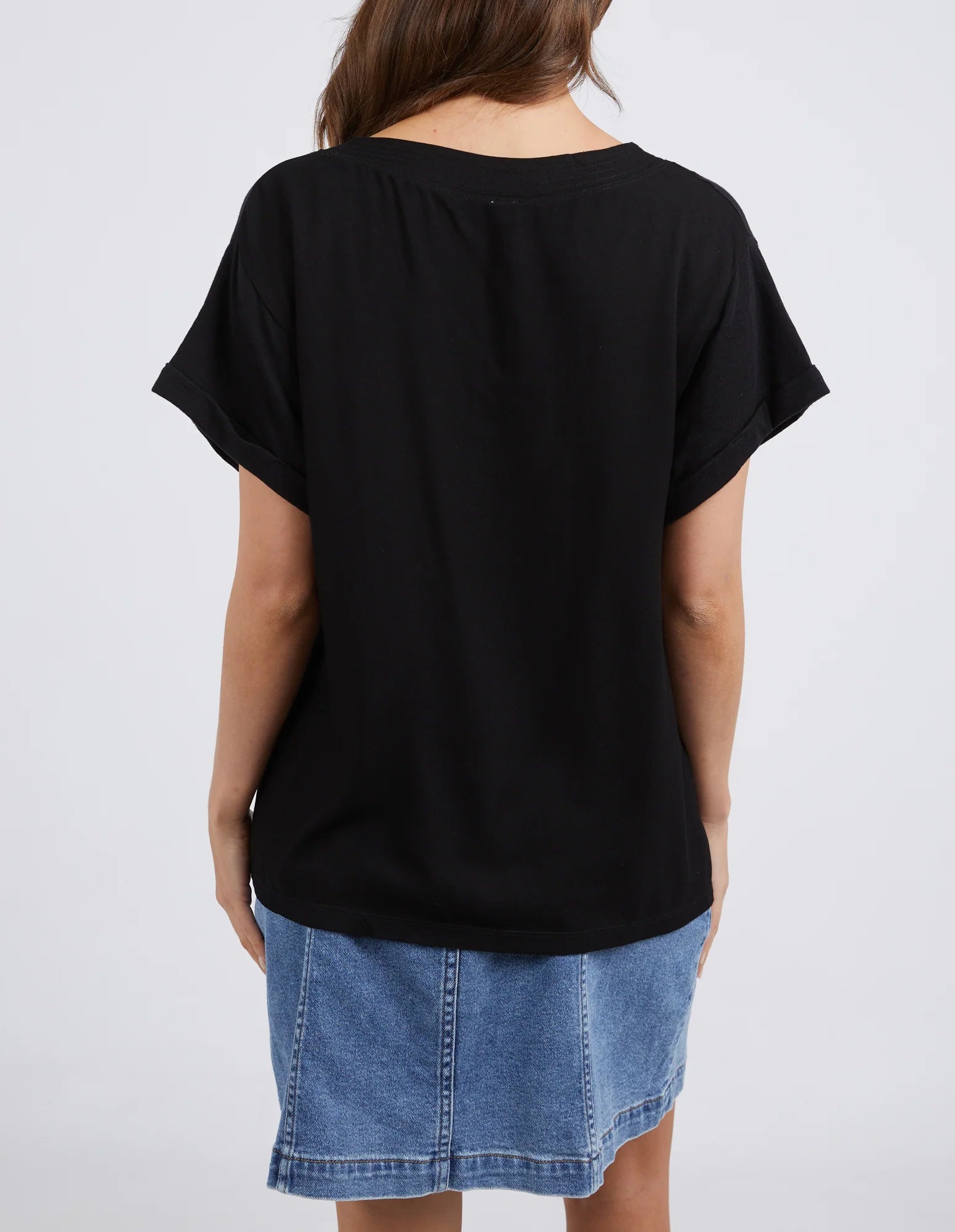 The ELM ANWEN TOP BLACK is the perfect top for versatile styling. Its relaxed fit cotton jersey front is complemented with a woven back and neckline for a unique look. Enjoy breathable comfort and stylish elegance with this must-have top.