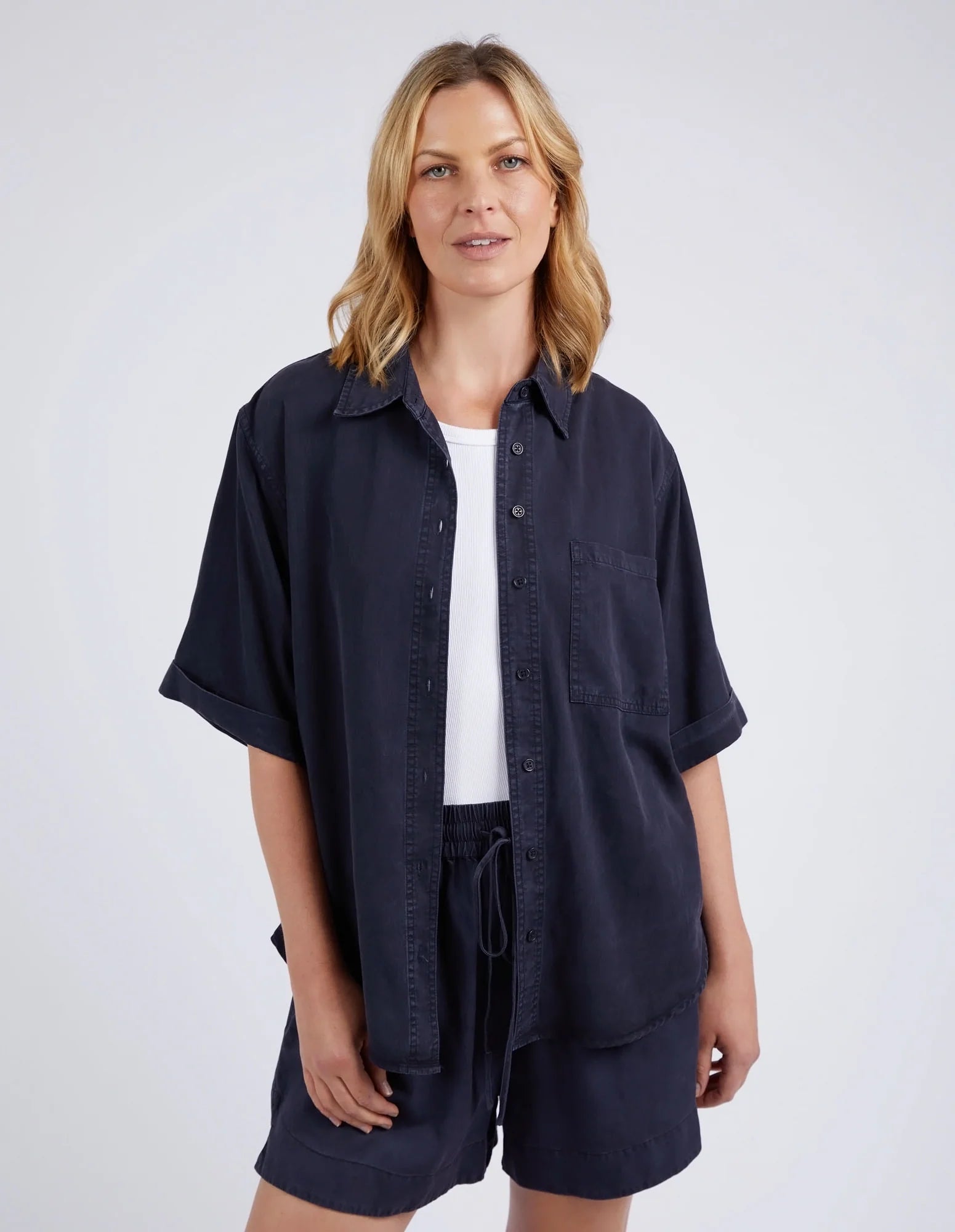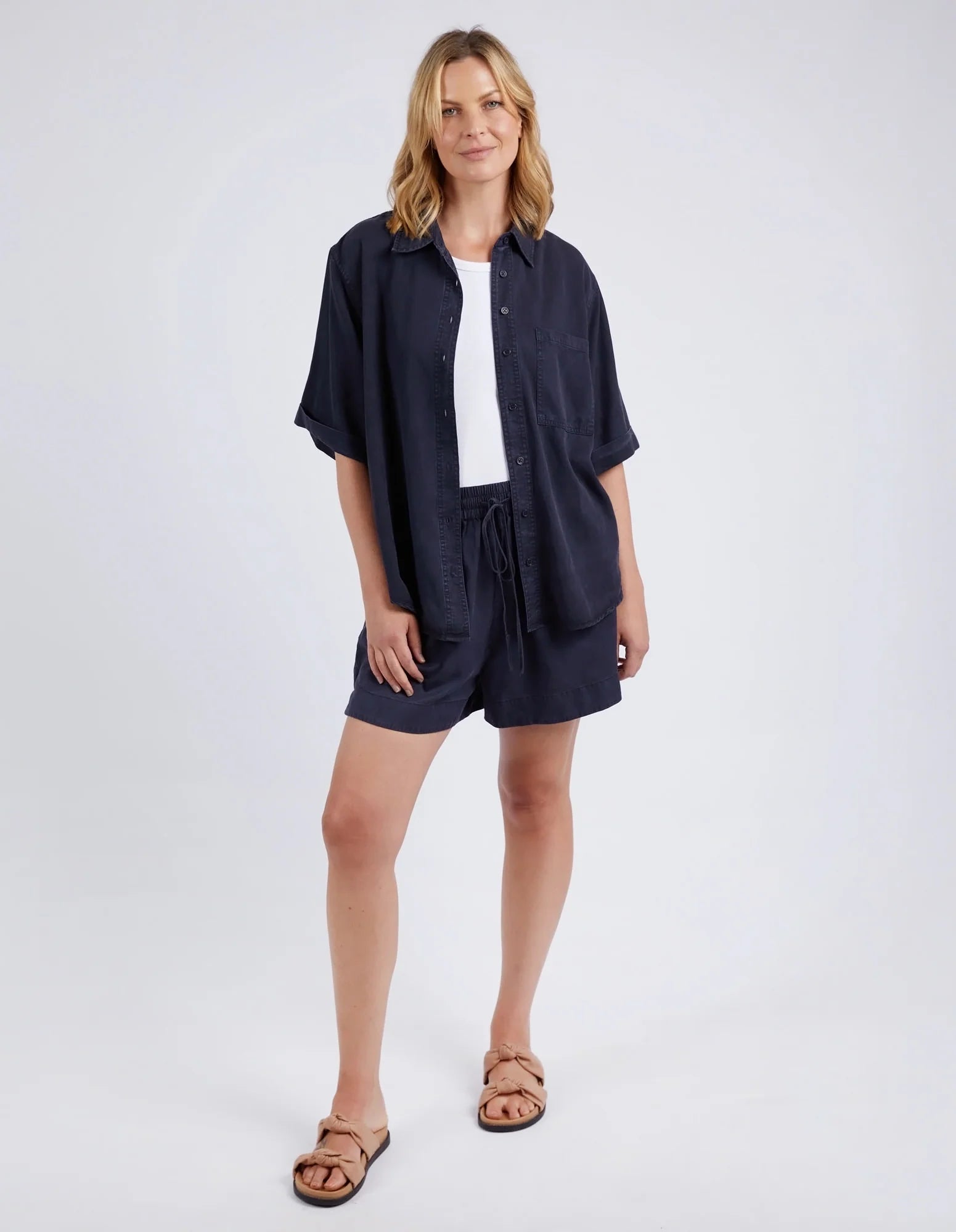 Expertly designed for the ultimate mix and match experience, the ELM BLISS WASHED SHIRT NAVY is crafted from a linen lyocell blend that offers a satin soft touch and a flattering fit. With a classic button front and collar, this shirt can be paired with shorts from the Bliss range for the ultimate in comfort.