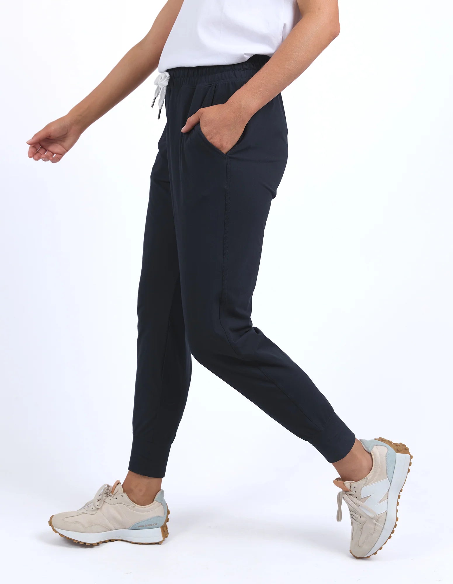 The Freedom Pant in black offers effortless comfort and freedom of movement with its elastic waist and drawcord. Made from soft peached polyester elastane fabric, these flattering pull-on pants feature slant pockets and are perfect for everyday wear. Model is wearing a size 10.