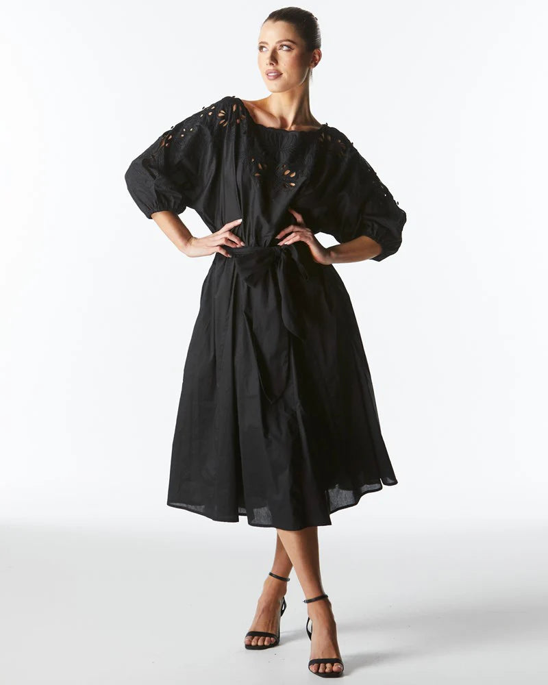 FATE+BECKER LILY POND EMBROIDERED DRESS BLACK