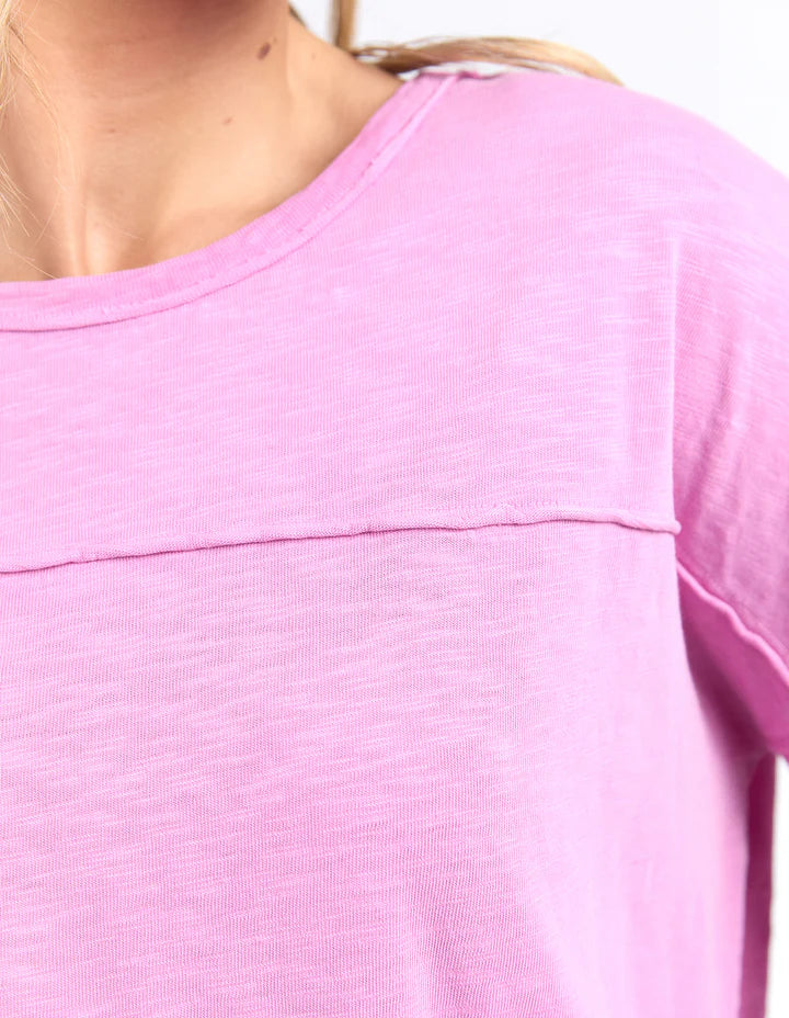 Introducing the must-have FOXWOOD JAYNE THROW ON TOP FUSCHIA! Made from 100% cotton slub jersey, this lightweight long sleeve top features a trendy round neckline, raw edge details, and side split hi-low hem. Perfect for any season, you'll want to wear this quirky top on repeat.