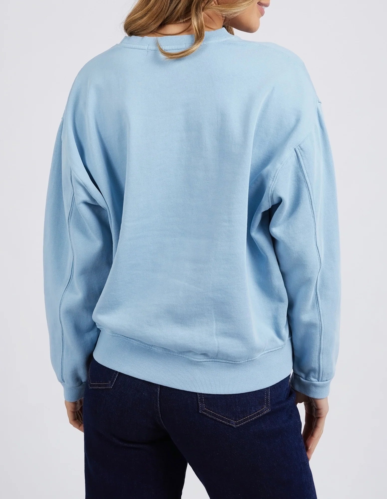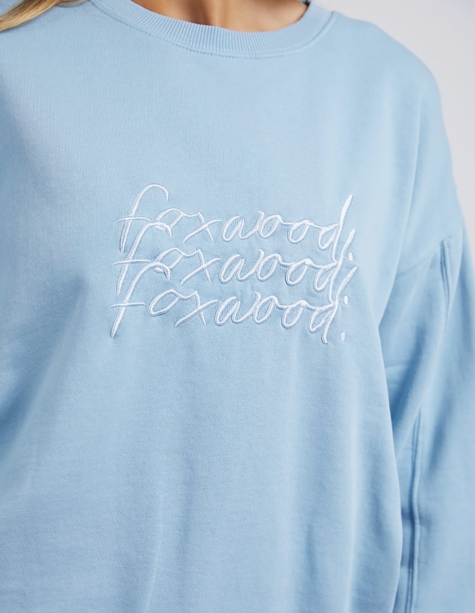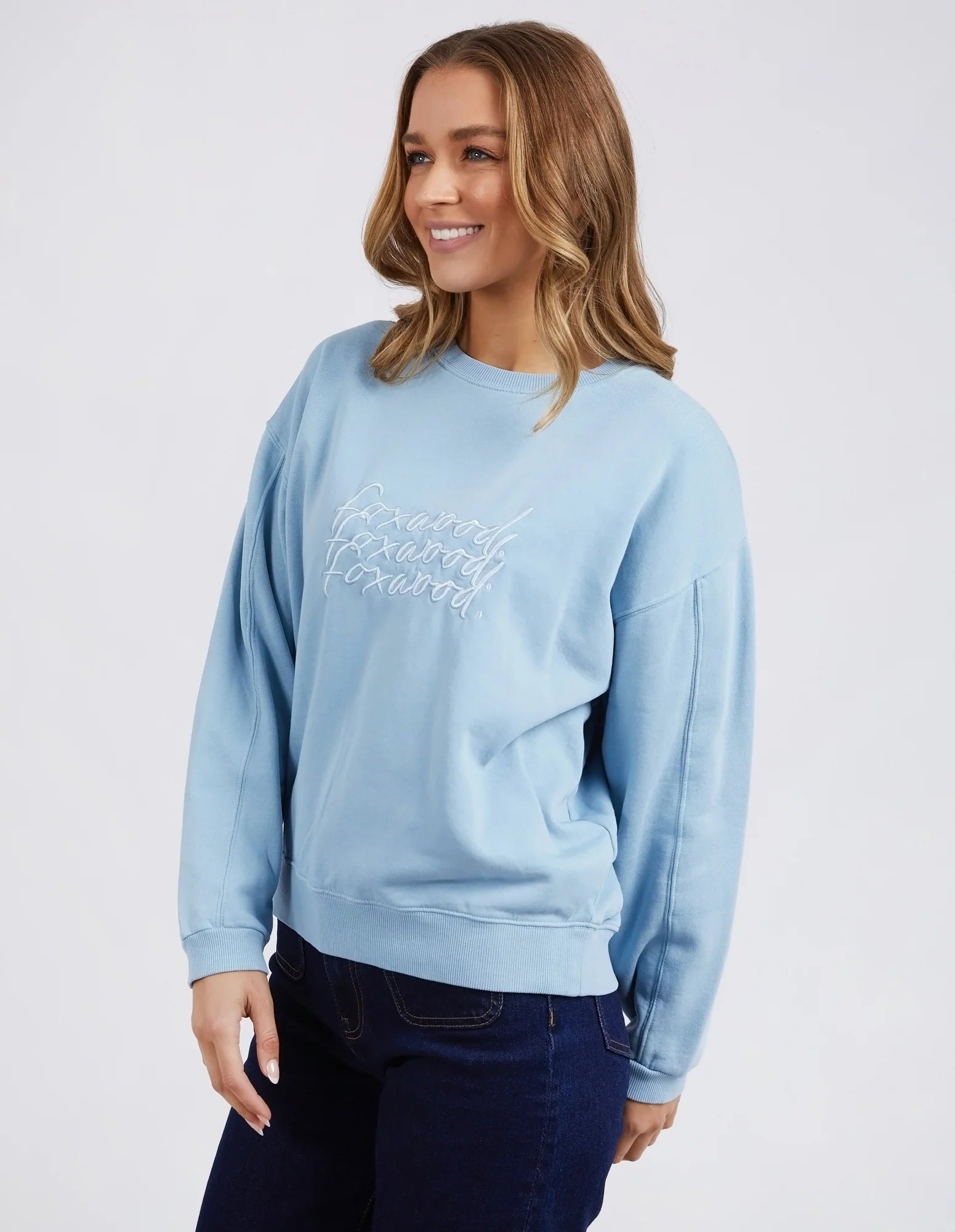 Introducing the FOXWOOD NIMBLE CREW in NANTUCKET BLUE. This relaxed fit crew, made from 100% brushed cotton, boasts a fun chest embroidery and ribbed sleeve panels. From the creators of the Simplified Crew, this slightly cropped design is a must-have addition to any wardrobe.