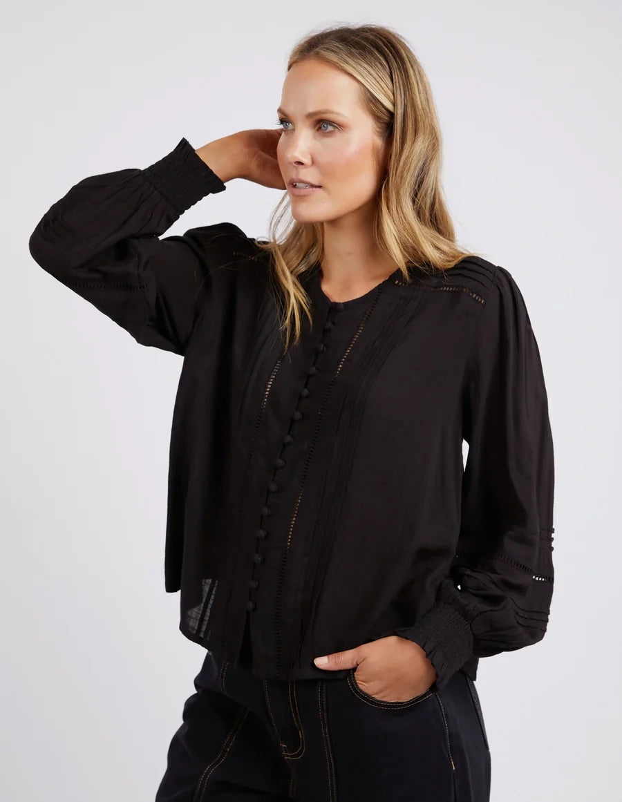 As a product expert, I present to you the versatile Foxwood Orson Blouse in flattering textured viscose. With its button-through detail, elastic cuffs, and tucking and trim details, it can easily transition from work to play. Made from 100% viscose, it drapes beautifully and can be tucked in or worn over bottoms.