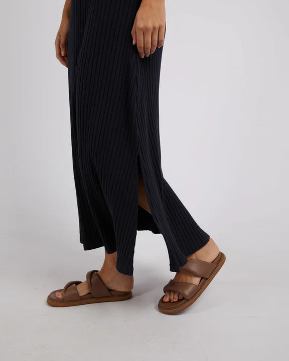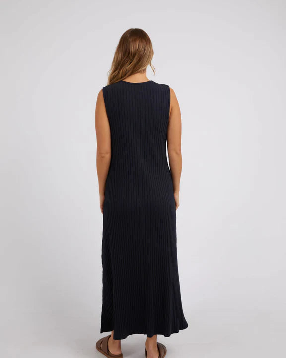 Get ready to turn heads with the FOXWOOD PIPPA RIB DRESS in NAVY! This dress is not only contour fitting and comfortable, but also features a flattering round neckline and side seam splits for ultimate versatility. Perfect for any occasion!