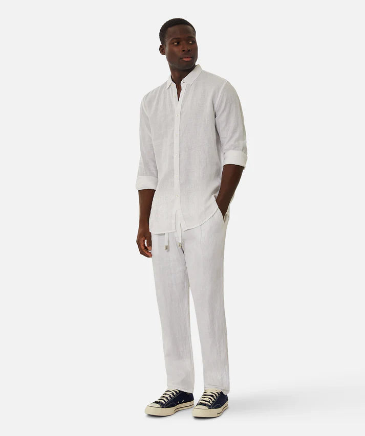 Elevate your style with The Tennyson Linen L/S Shirt. Made with 100% pure linen, this breathable and lightweight shirt brings effortless charm to any outfit. With a button-through front, button fastening sleeves, and a relaxed fit, it's the perfect choice for year-round comfort.