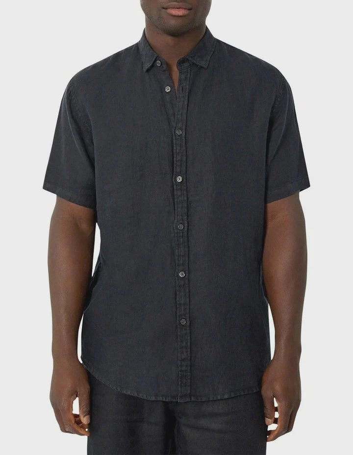 INDUSTRIE THE TRINIDAD LINEN BLEND SS SHIRT OD BLACK