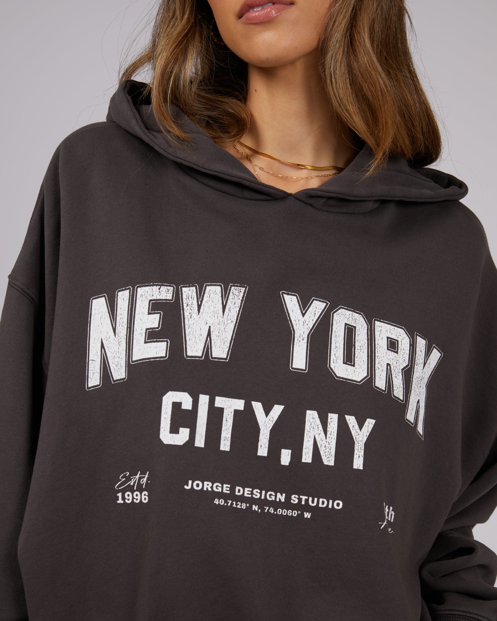 A must-have for any wardrobe, the JORGE NEW YORK HOODIE in WASHED BLACK offers ultimate comfort in a stylish and versatile design. Made for women, this hoodie is perfect for casual wear and features a fashionable washed black color. Stay cozy and on-trend with JORGE.