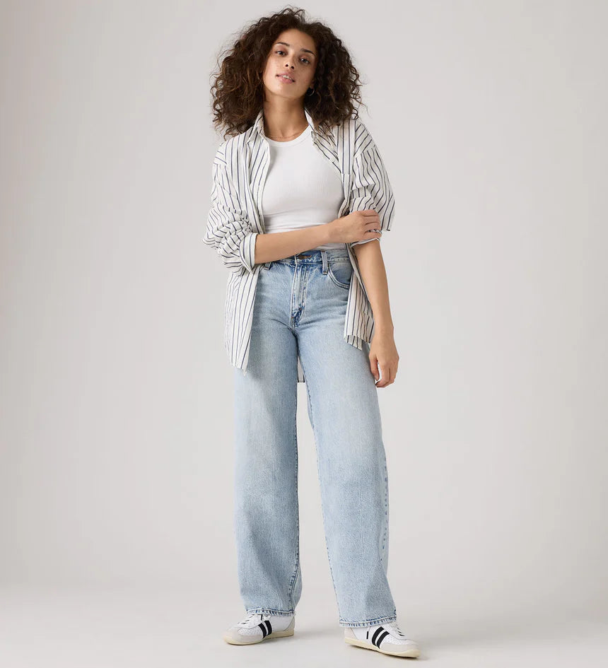 These LEVIS Baggy Dad Fan Flare jeans offer a relaxed, mid-rise fit inspired by classic dad style—with a modern, baggier twist. Featuring a straight leg and roomy hips and thighs, they provide a comfortable, slouchy feel while staying flattering. Designed to stack at the hem, these jeans complete your laid-back ‘90s look perfectly when paired with your favorite sneakers.