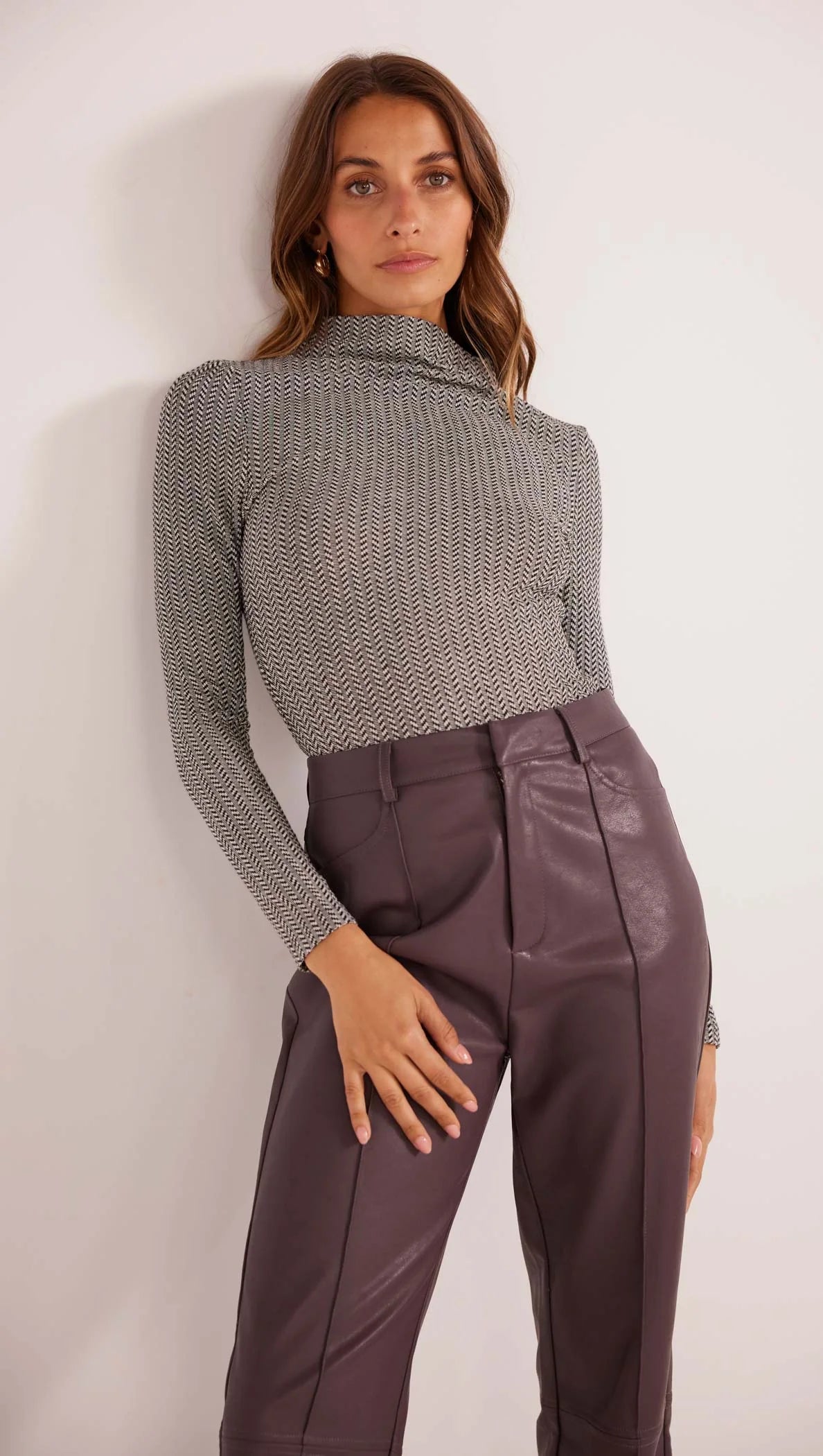 MINK PINK ASTRA LONG SLEEVE TOP BLACK/WHITE GEO