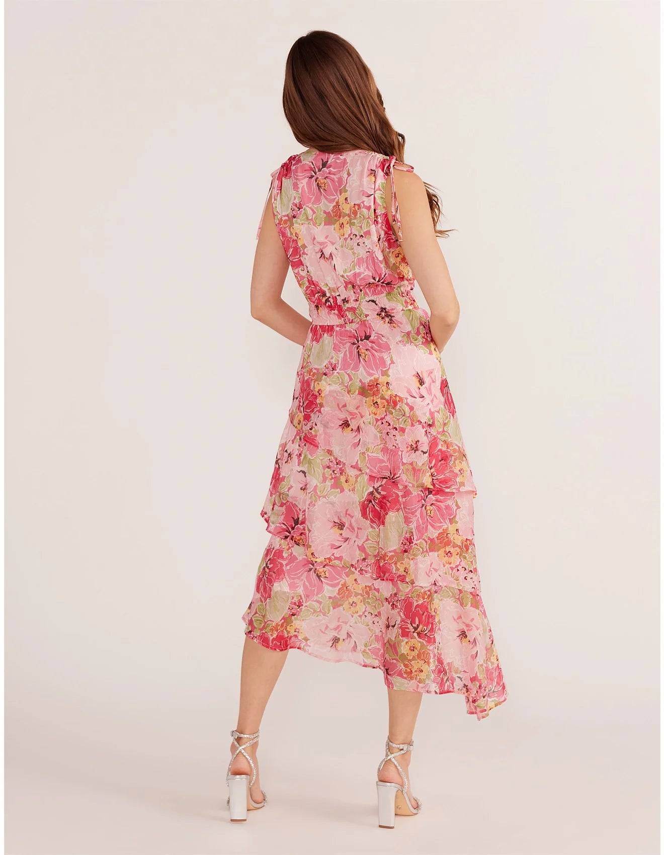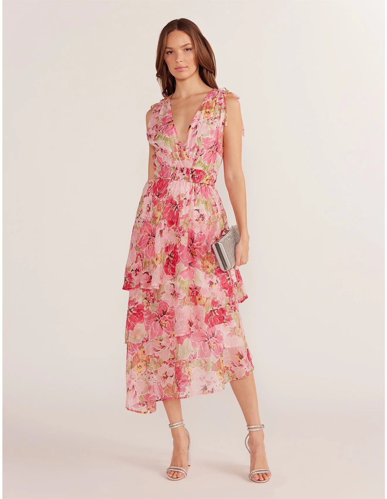 MINK PINK SIMONE TIERED MIDI DRESS PINK FLORAL