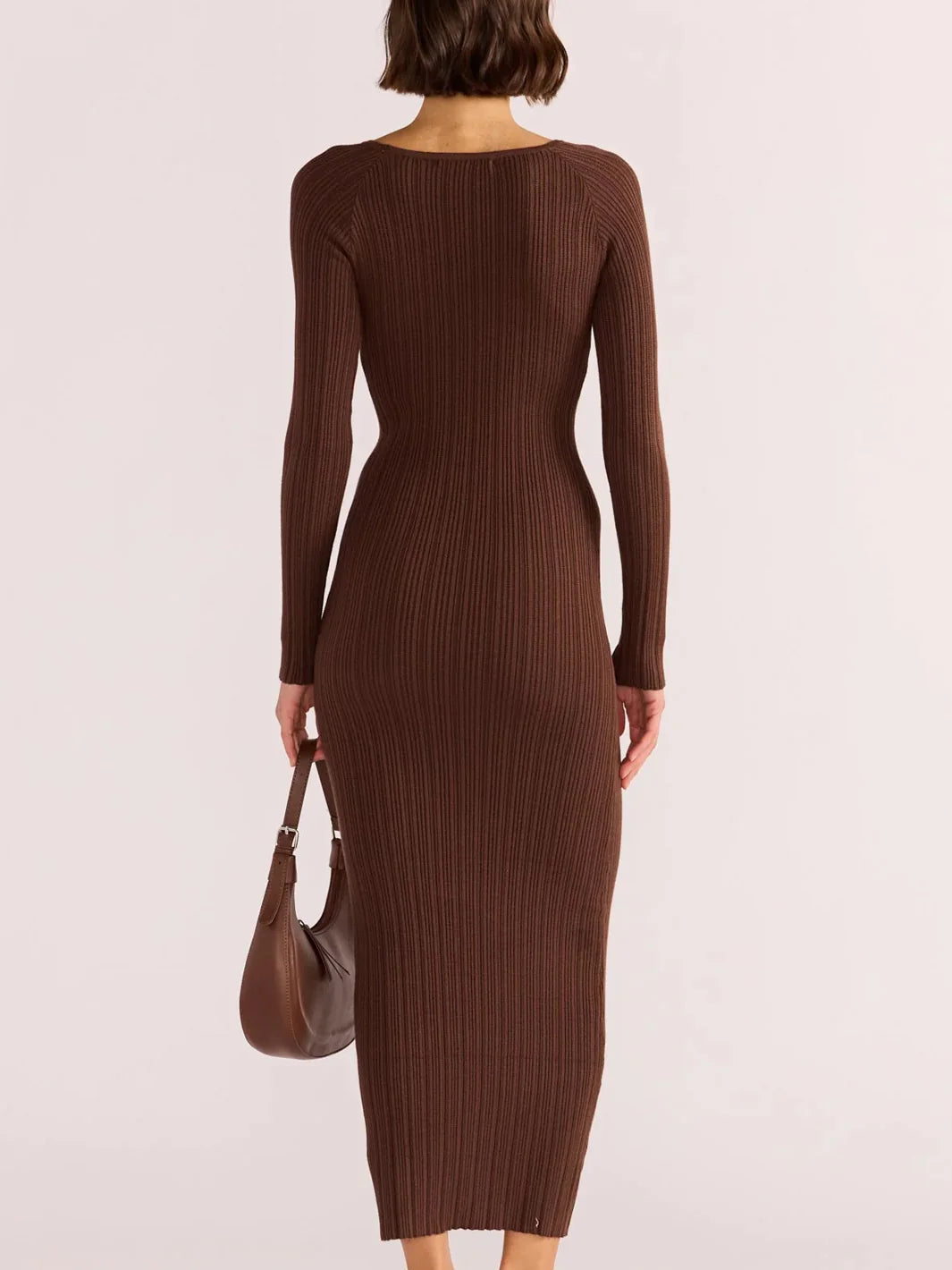 MINK PINK ZINNIA BEAD KNIT MIDI DRESS CHOCOLATE