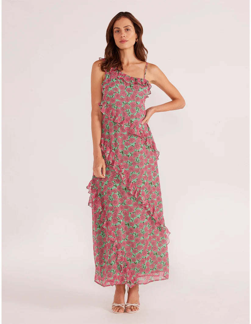 MINKPINK GRACE ONE SHOULDER MAXI DRESS CARNATION DITZY