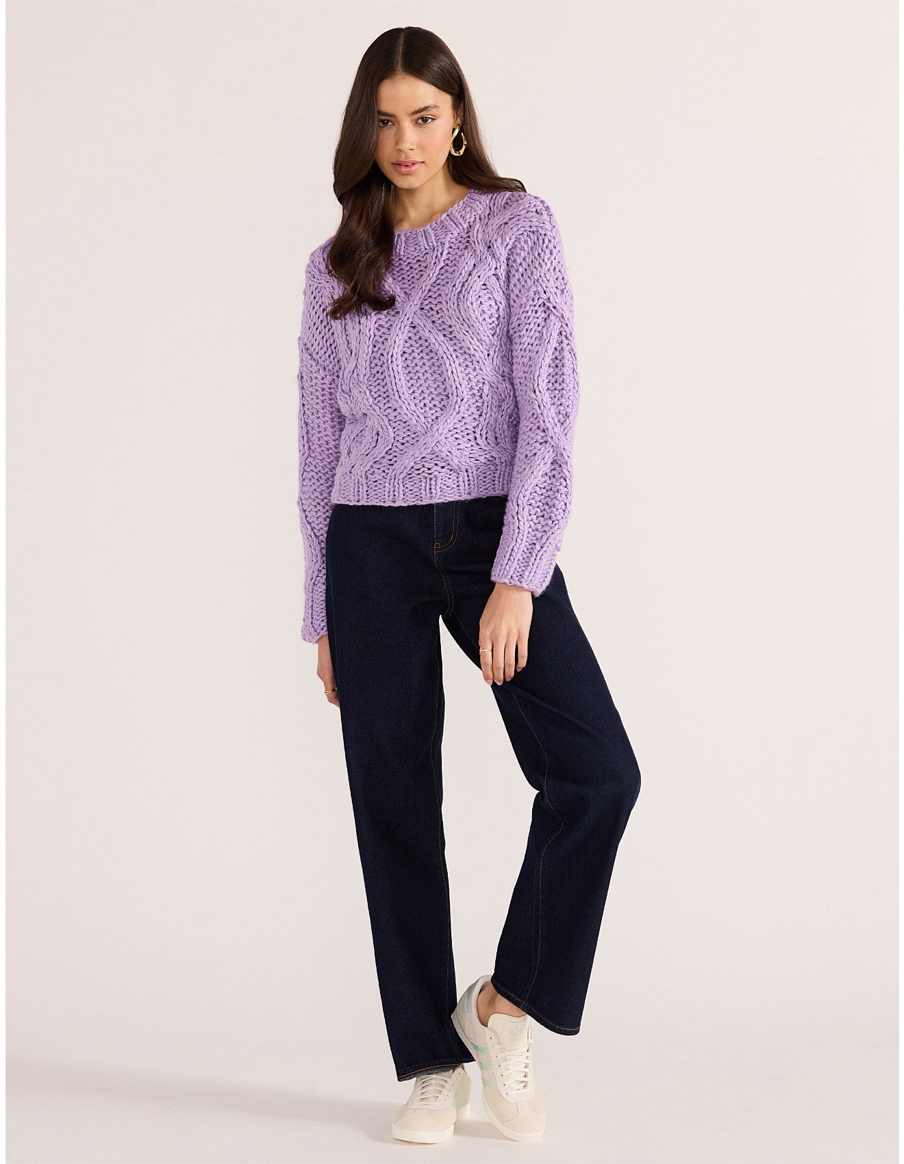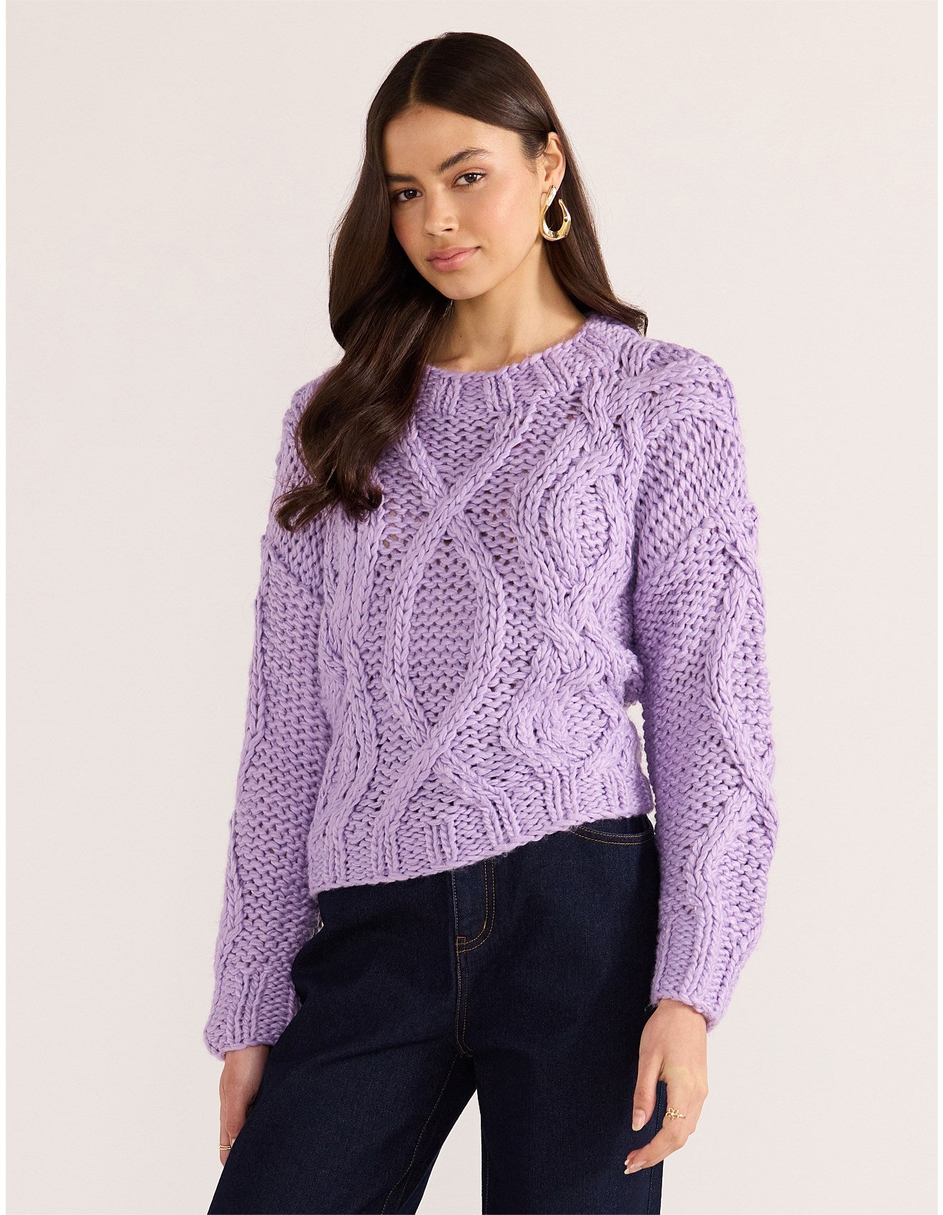 MINKPINK JENNIFER CABLE KNIT JUMPER LILAC