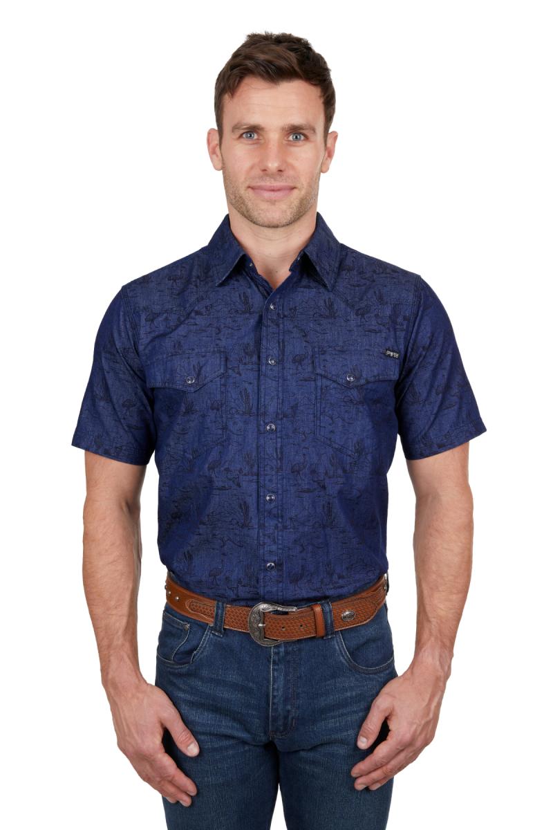 PURE WESTERN MENS DREW SS SHIRT DENIM